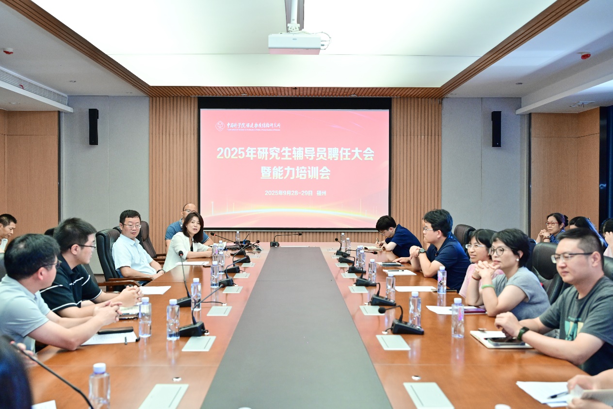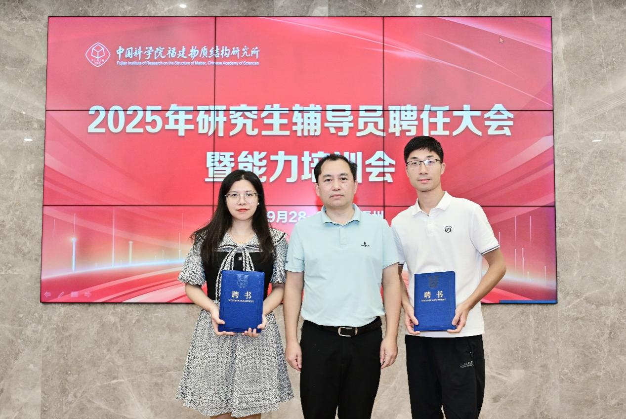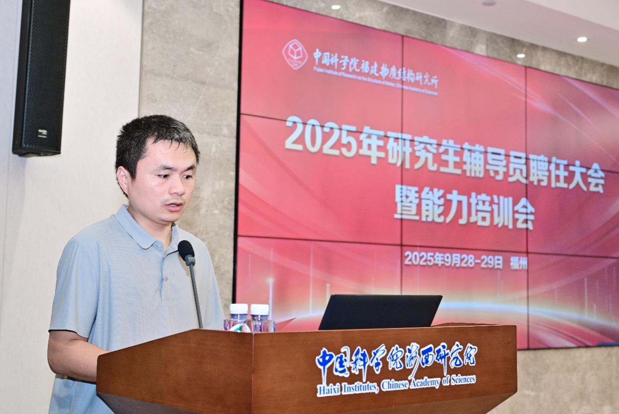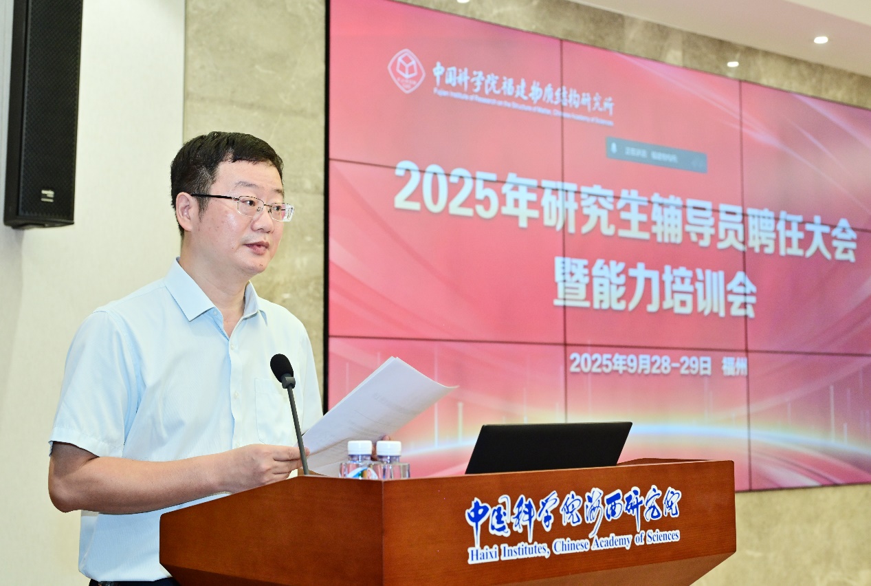 9月28日至29日,福建物构所在嘉锡楼举办2025年研究生辅导员聘任大会暨能力培训会。中国科学院大学学工部部长王岗(线上),福建物构所党委书记、副所长张健,所务委员吴少凡,闽江学院学工部部长杨晓,高校辅导员代表,全体新入职辅导员及教育处全体成员参加会议。会议由教育处处长张婧主持。
