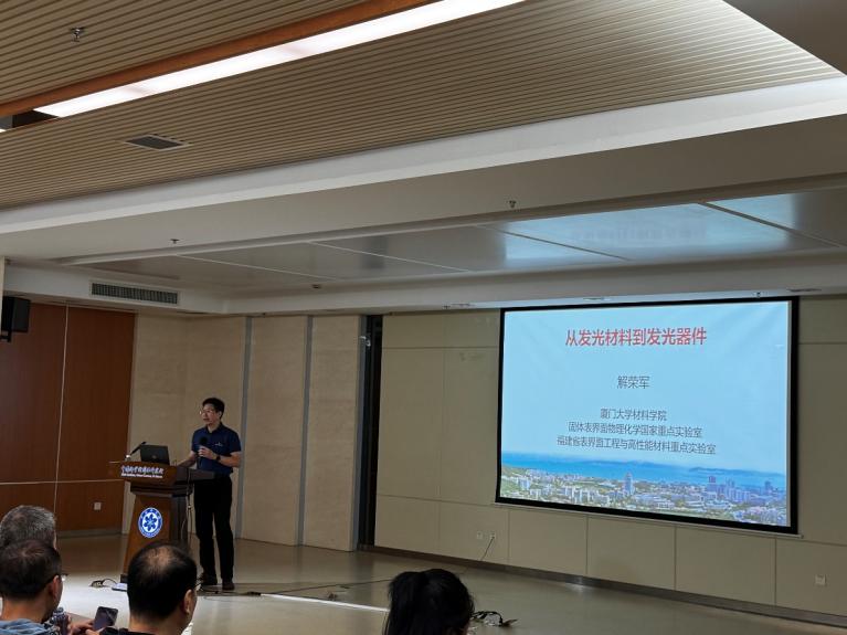 应功能晶体与器件全国重点实验室和福建省纳米材料重点实验室的邀请,厦门大学材料学院院长解荣军教授于4月27日访问福建物构所,并作了题为“从发光材料到发光器件”的学术报告。解荣军教授介绍了他所领导的研究团队在稀土掺杂氮化物、量子点和有机发光材料的设计、合成和性能优化等方面所开展的应用基础研究,并展示它们在固态照明(LED和LD)和先进显示(LCD、QLED、micro-LED)等发光器件中的应用,此外,解荣军教授还进一步展示了应力响应型发光材料的设计构筑,以及基于应力发光材料对应力动态分布成像和超声波频率探测的实现。讲座结束后,现场师生踊跃提问,就“荧光粉寿命优化”“激光材料产业化挑战”等问题与解教授展开深入探讨。解荣军教授结合自身科研经历,鼓励青年学子立足国家需求,探索材料科学的交叉创新。