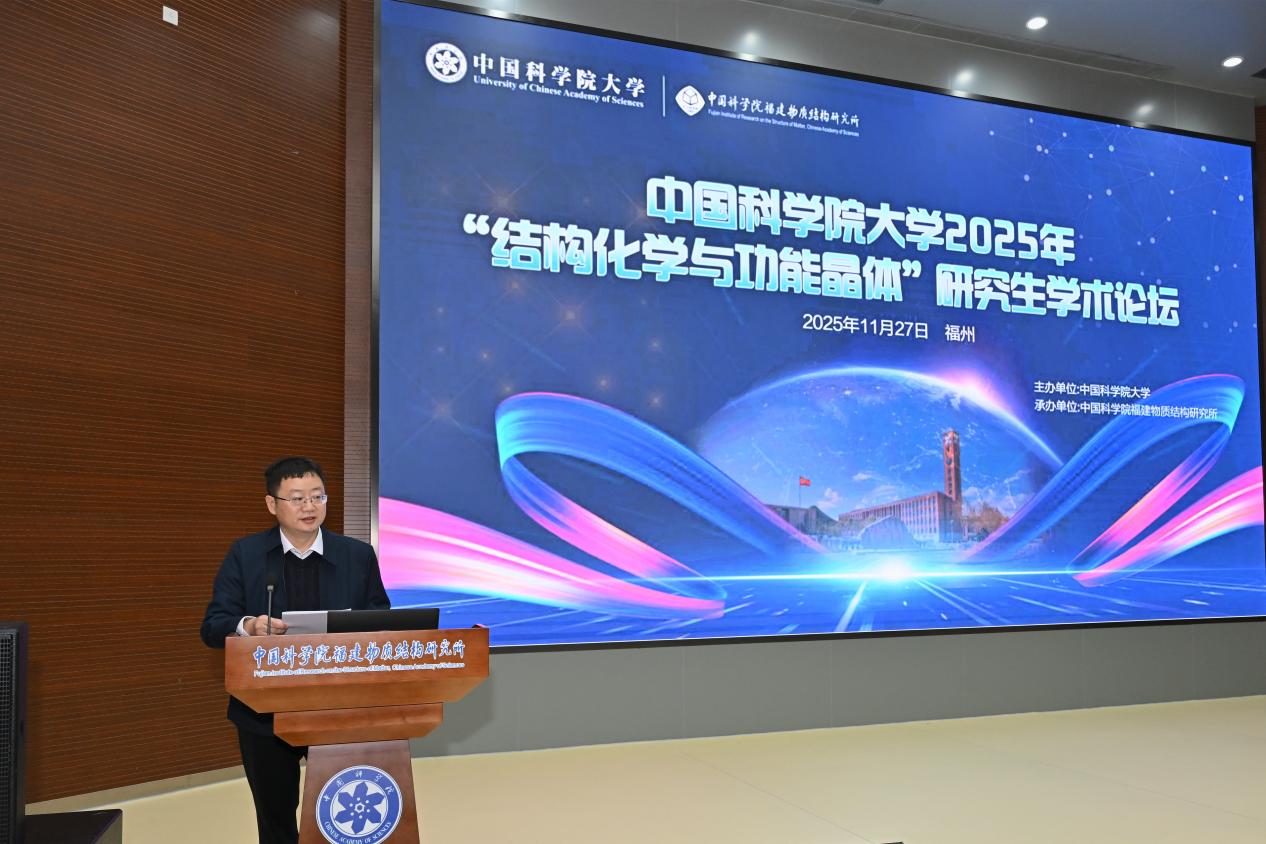 11月26日至28日,由中国科学院大学主办、中国科学院福建物质结构研究所承办的2025年“结构化学与功能晶体”研究生学术论坛在福州高新园区举行。福建物构所所务委员吴少凡研究员、结构化学全国重点实验室副主任徐刚研究员、功能晶体与器件全国重点实验室副主任孙志华研究员、同济大学化学科学与工程学院副院长刘梅川教授、中山大学化学学院姜久兴教授、福州大学化学学院副院长张金水教授出席论坛,来自28所高校和科研院所的127名研究生以及部分导师和同学共240余人参加活动。